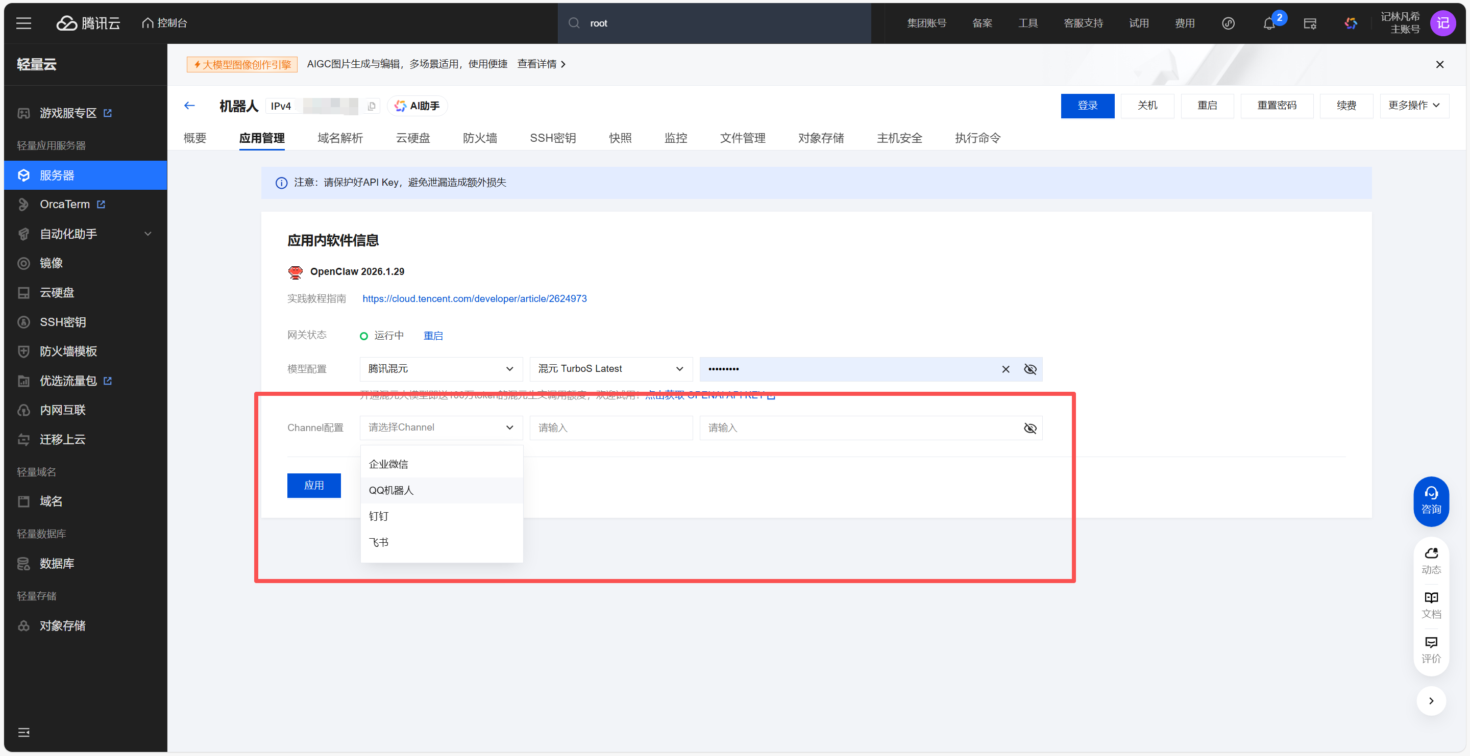 - 安全提醒:OpenClaw权限较高,只给可信模型Key,定期备份服务器快照。