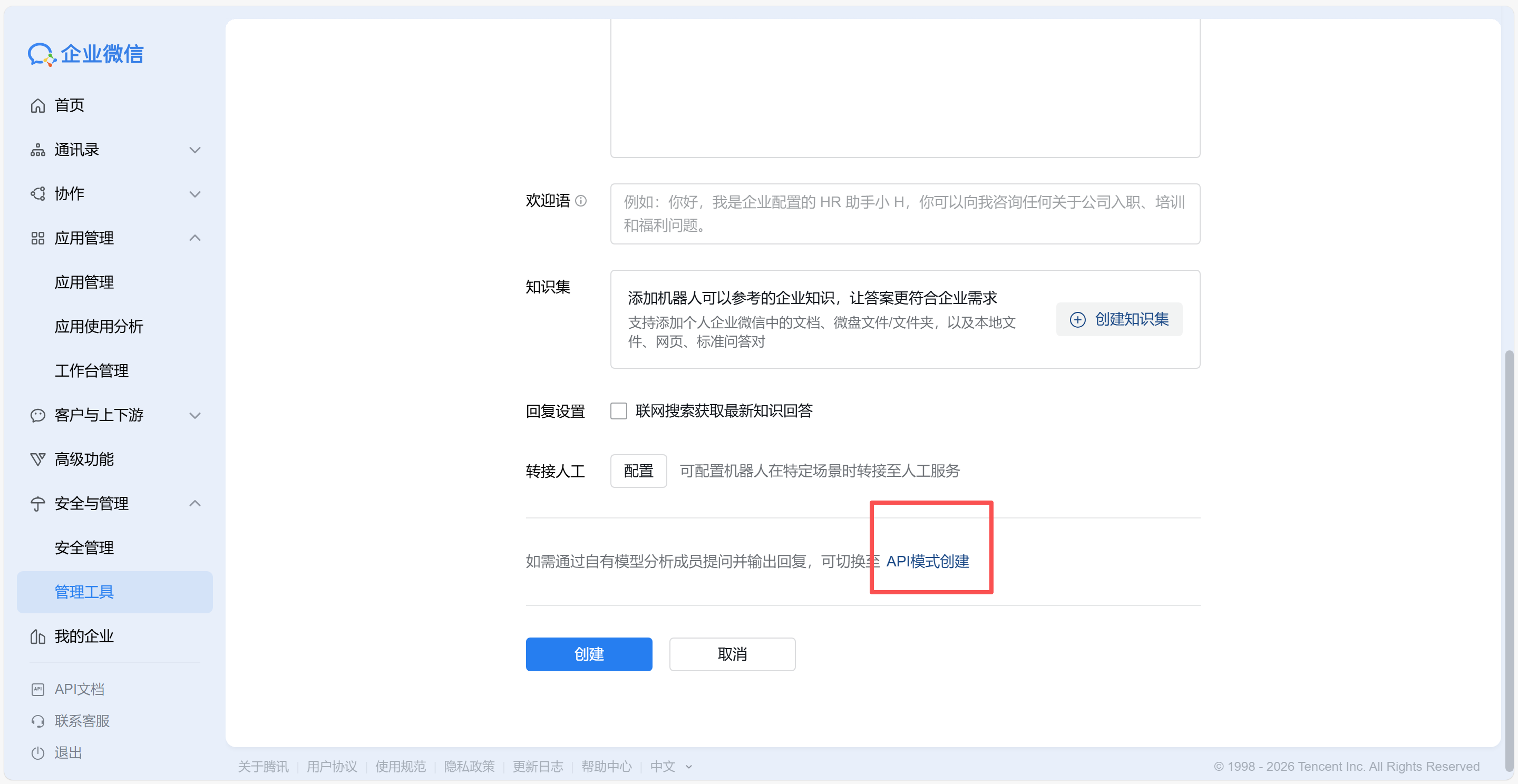 - 登录企业微信管理后台:https://work.weixin.qq.com/wework_admin/frame