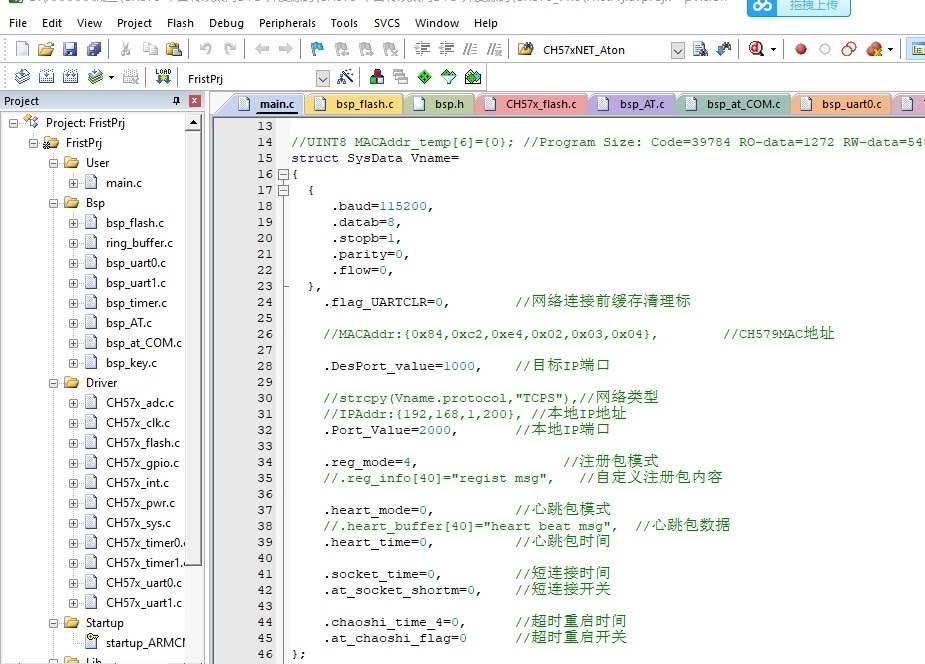 项目采用“模块分离”设计,ADC、BLE各子模块独立封装,通过统一的硬件抽象层(Bsp)与芯片驱动(CH57x_common.h)交互,便于功能扩展(如新增传感器采样、以太网透传模块)与硬件适配。