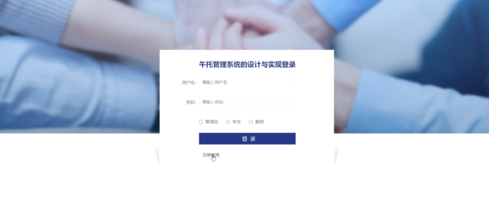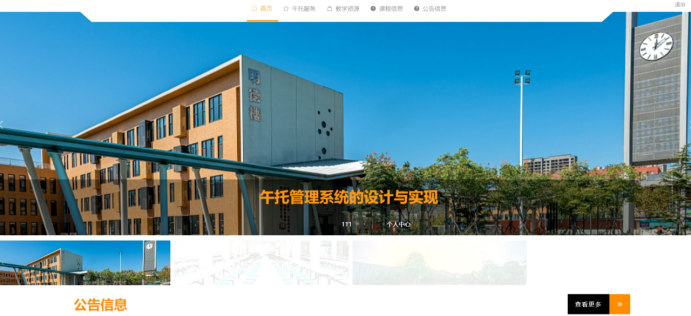 当人们打开系统的网址后,首先看到的就是首页界面。在这里,人们能够看到午托管理系统的导航条,通过导航条进入各功能进行操作。系统首页界面如图5-1所示: