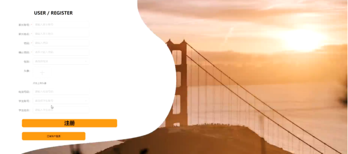 在注册流程中,用户在Vue前端填写必要信息(如用户名、密码等)并提交。前端将这些信息通过HTTP请求发送到Java后端。后端处理这些信息,检查用户名是否唯一,并将新用户数据存入MySQL数据库。完成后,后端向前端发送注册成功的确认,前端随后通知用户完成注册。这个过程实现了新用户的数据收集、验证和存储。系统注册页面如图5-2所示: