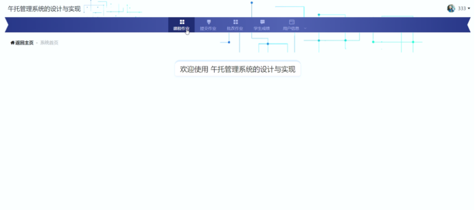 学生进入系统可以对课程作业、提交作业、批改作业、学生成绩、用户信息等功能进行操作。学生主页面如图5-18所示: