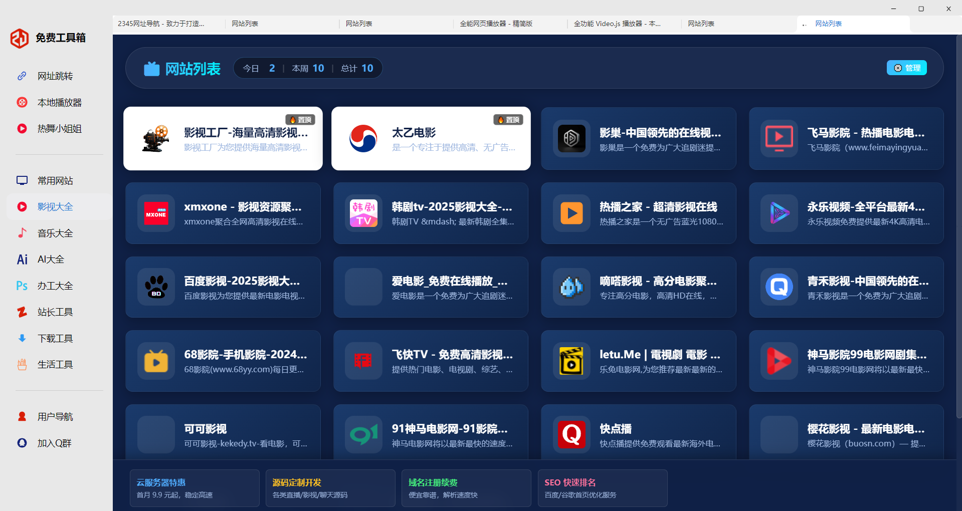 - 🌐 站长工具:SEO查询、权重分析、关键词挖掘,网站运营者的必备利器。