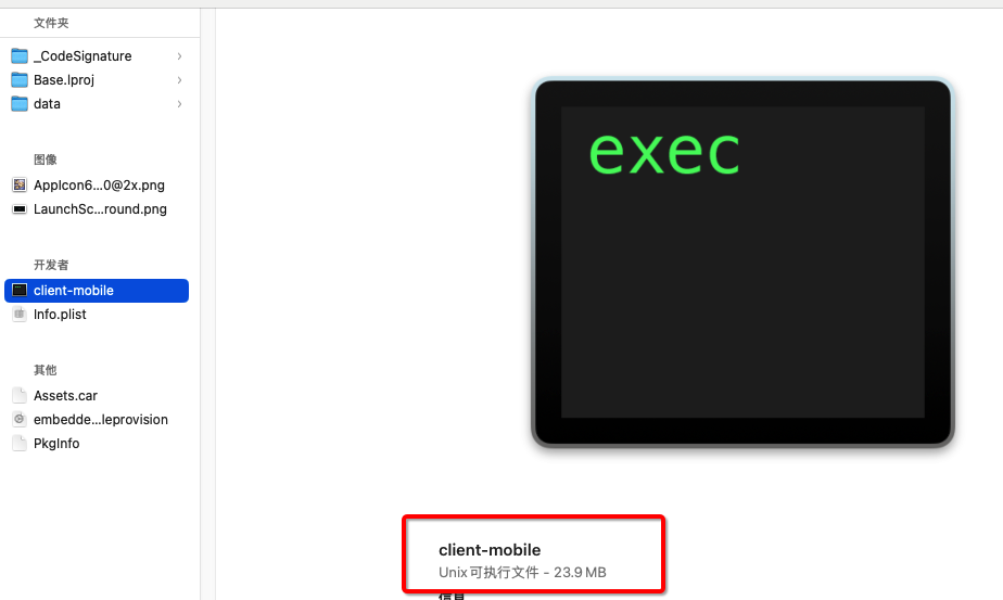 注意: cocos的可执行文件往往很大, 一个基础的app 可执行文件几乎达到了20M, 模块集成的多可能会更大. 我们来看这么大的可执行文件里面是什么?