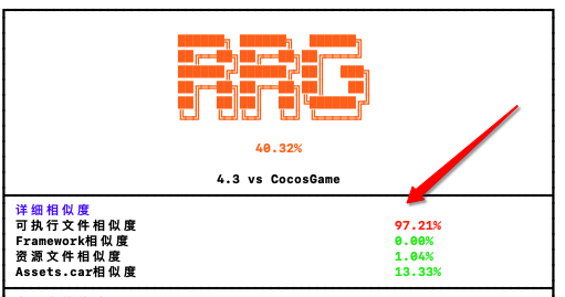 随便对比两个不相关的cocos开发的app,可执行文件相似度高达97%, 这无疑是要4.3a打回的