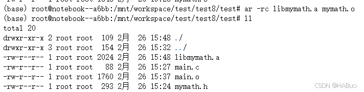 ar -rc libmymath.a mymath.o
