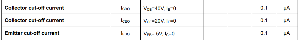 - 偏置条件:发射结反偏或零偏(Vbe<0.5V,硅管死区电压),集电结反偏