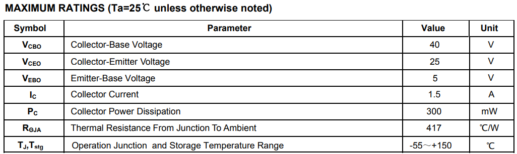 | 小信号通用管 | 2N3904/MMBT3904 | NPN | 40V | 200mA | 625mW/200mW | 100 | 信号放大、小电流驱动、检测电路 |