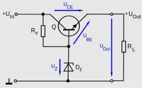 - 输出电压 Vout=Vz-Vbe=5.6V-0.7V=4.9V≈5V