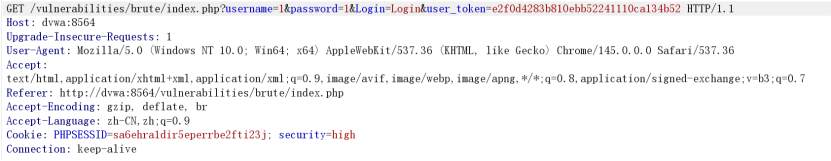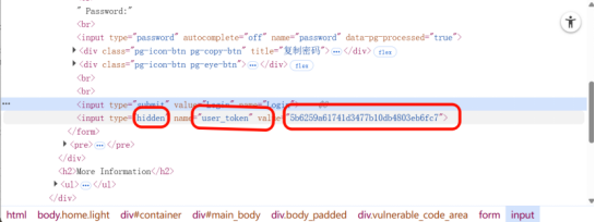 High 难度新增时间延迟+user_token 验证,token 明文显示在前端页面,需动态提取 token 配合爆破。