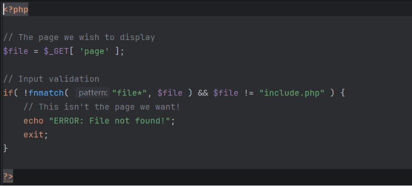 if(!fnmatch("file,fie",$file)&&$file !="include.php"){