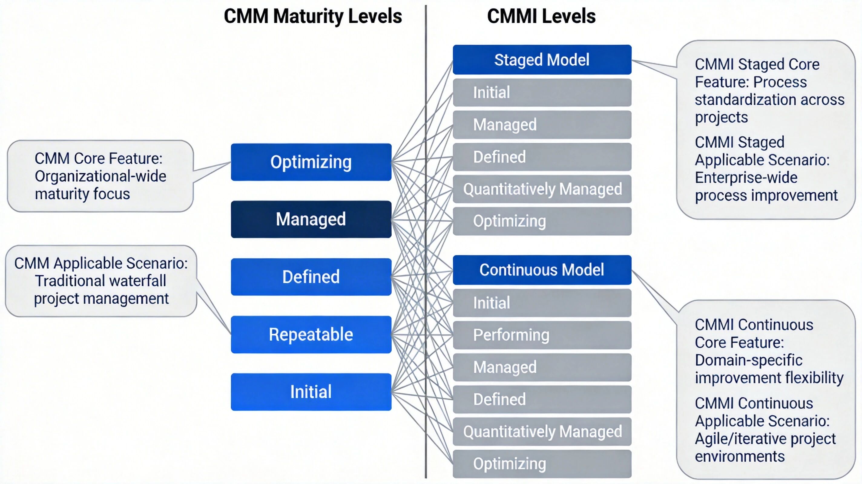 CMM 与 CMMI 等级对应关系图