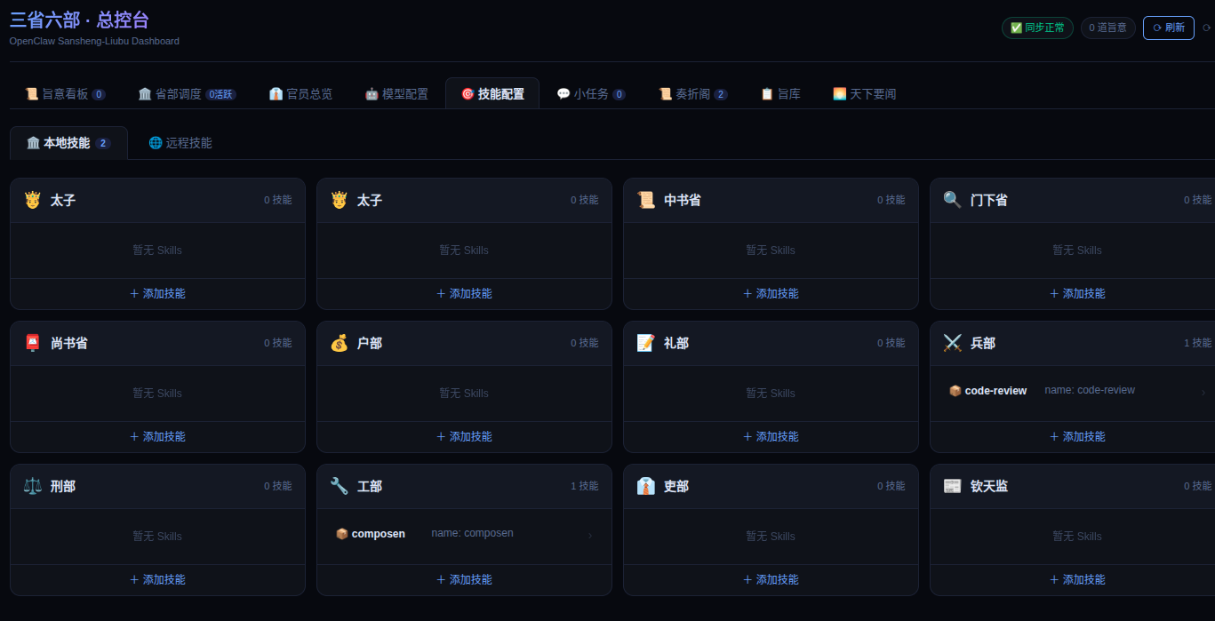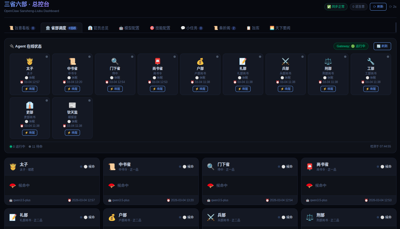 | 📮 尚书省 | shangshu | 派发、协调、汇总 | 任务调度、进度跟踪、结果整合 |