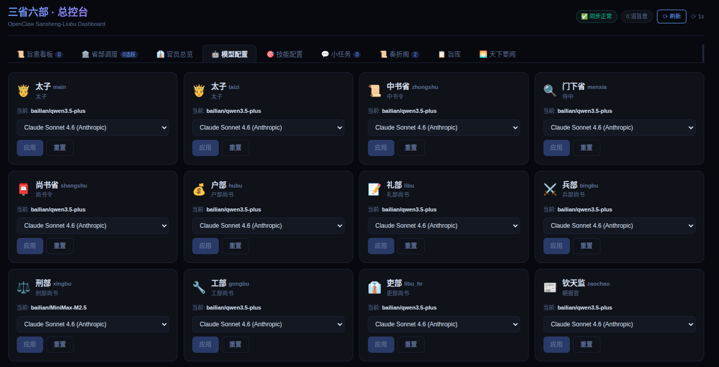 最近我在折腾一个非常硬核的开源项目,它巧妙地把中国古代的三省六部制搬到了 AI 架构里:有负责接收需求分拣的“太子”,有负责拆解任务的“中书省”,还有负责干脏活累活的“六部”。