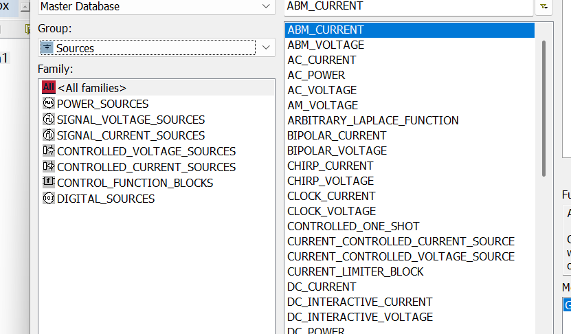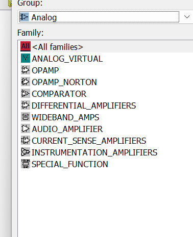 <All families>(所有元件)显示当前组下的所有模拟器件,方便快速浏览和查找。