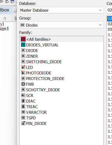 <All families>(所有元件)显示当前组下的所有二极管及相关元件,方便快速浏览和查找。