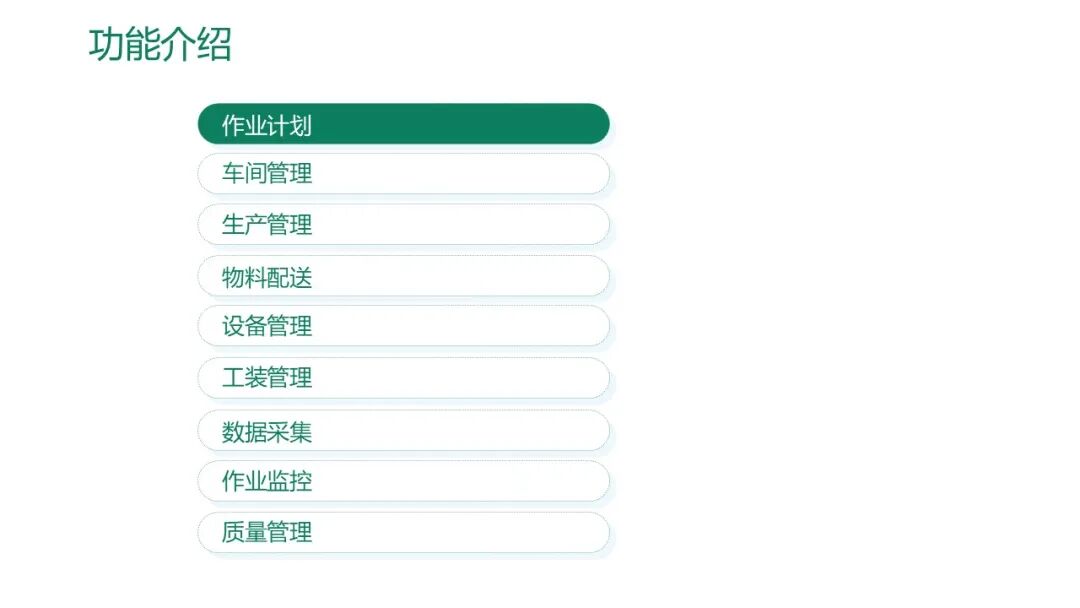 这个MES解决方案以“计划-执行-监控-分析”闭环为核心,通过作业计划、生产管理、物料配送、设备工装管理、质量追溯、数据采集、机床联网等模块,实现车间生产透明化、精益化、智能化,帮助企业降本增效、提升竞争力。