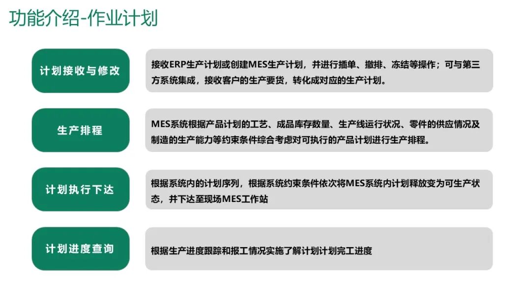 计划管理:接收ERP季度/周计划,结合产能、库存、物料进行排产