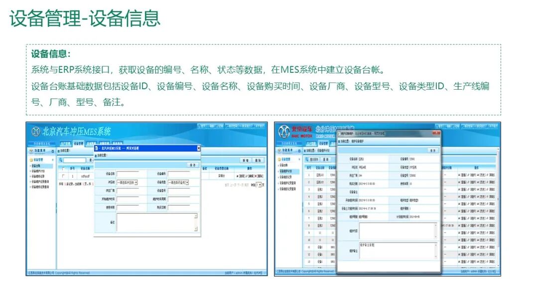 设备台账:建立设备基础信息(编号、型号、厂商、购买时间等)