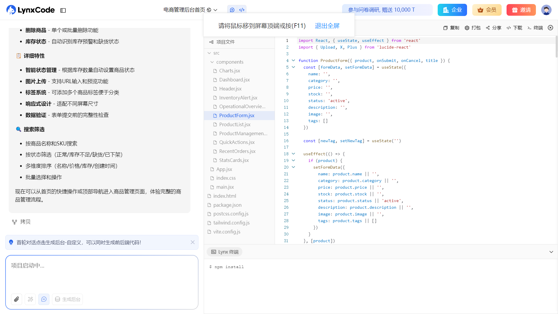 例如通过 lynxcode 用一句自然语言生成后台系统或小型业务应用,再进行微调,比传统建站流程更快完成验证。