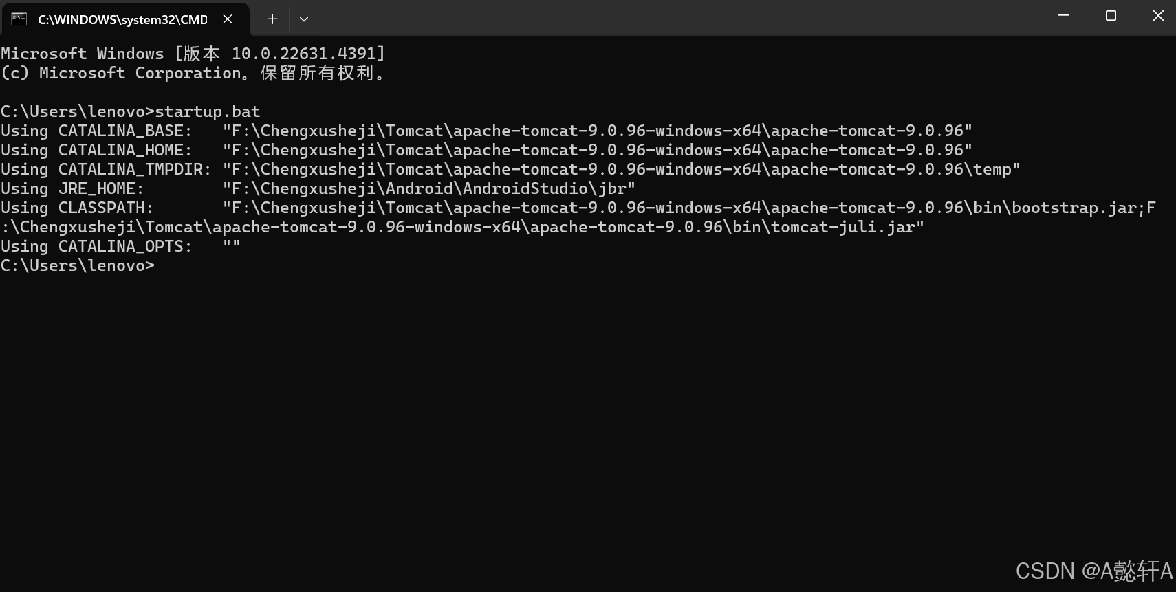 启动:双击bin/startup.bat或在命令行执行startup.bat