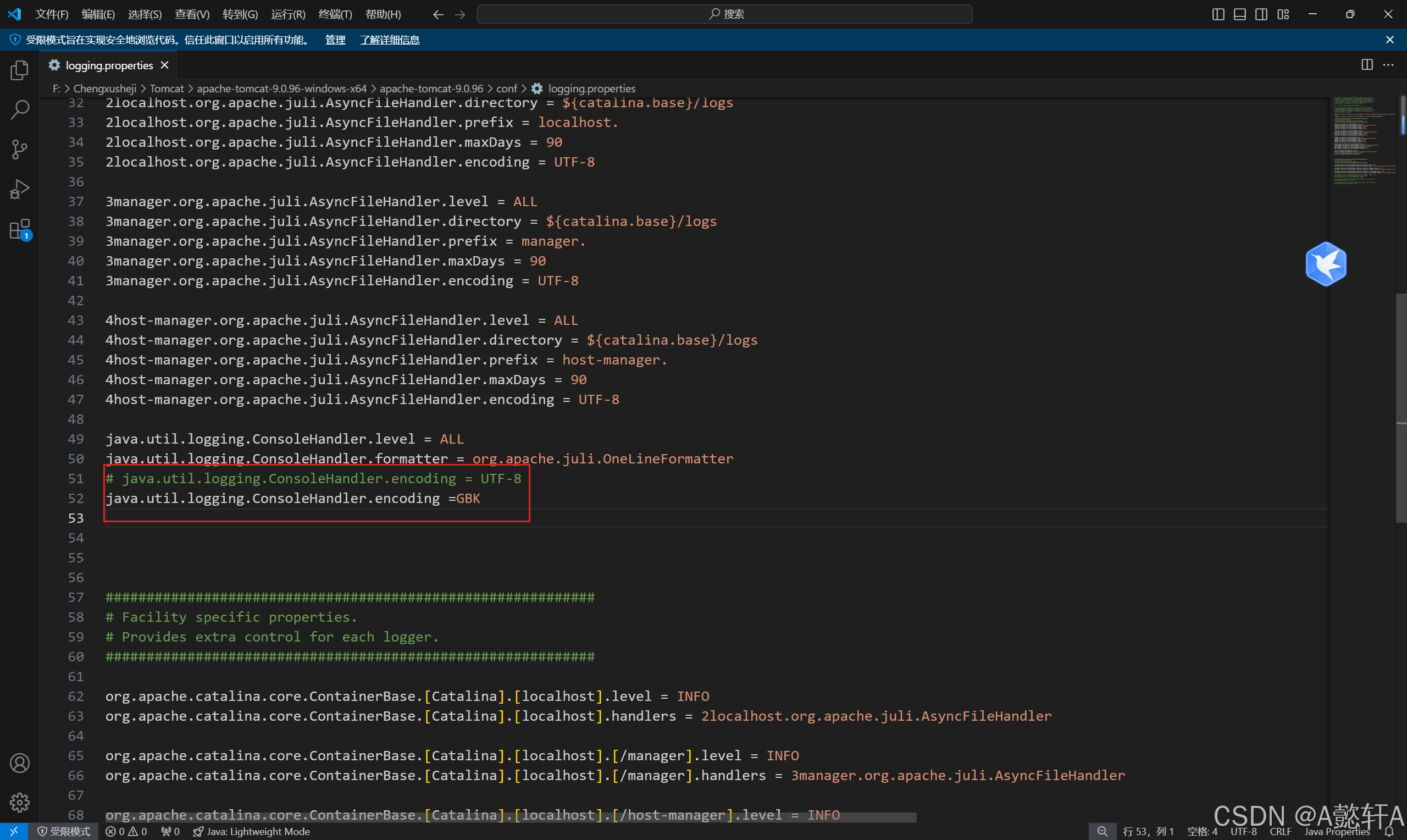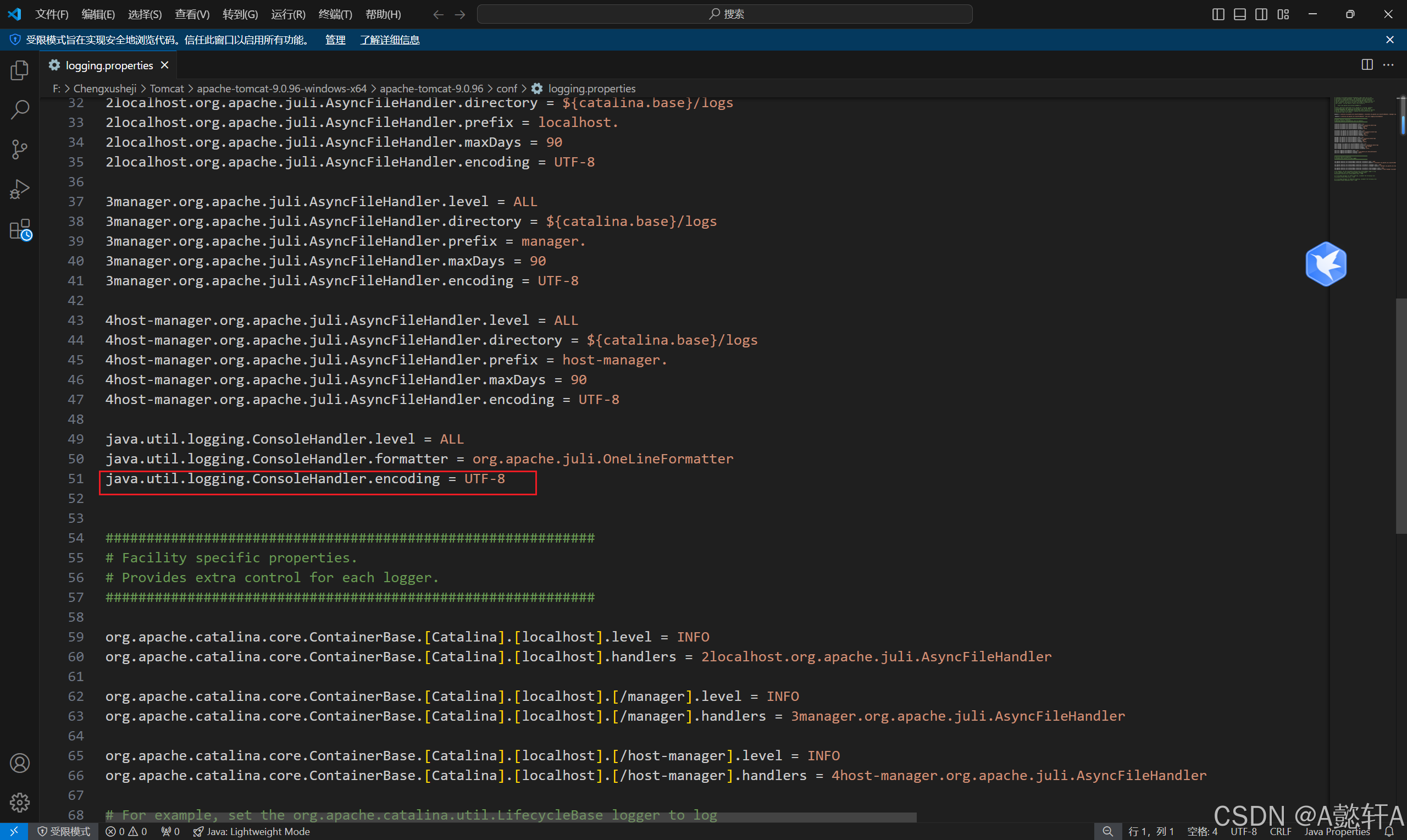 2.4.2.1 打开apache-tomcat-9.0.96->conf->logging.properties