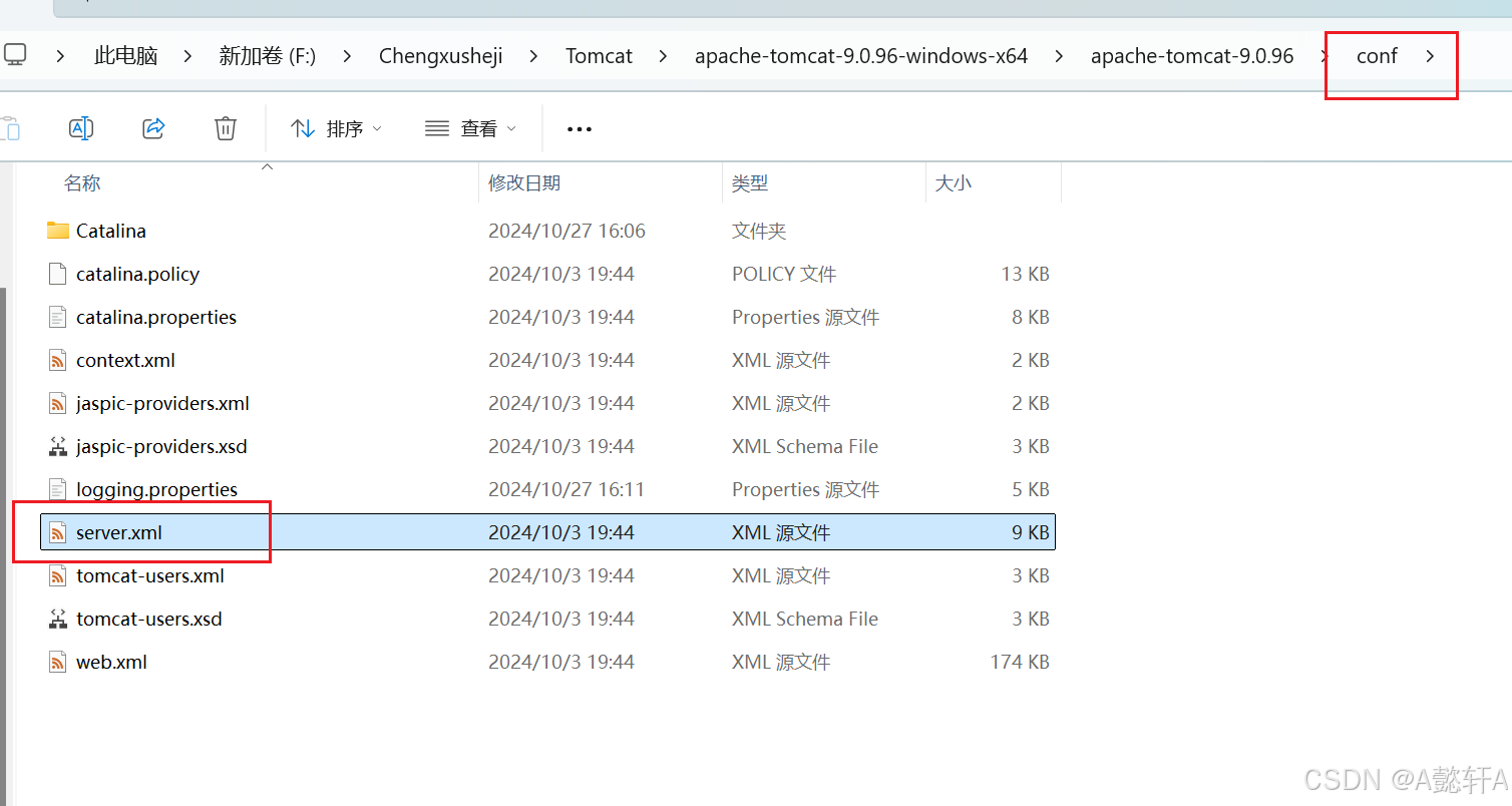 2.5.2.1 打开apache-tomcat-9.0.96->conf->server.xml