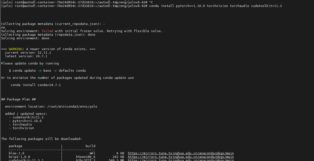 conda install pytorch==1.8.0 torchvision torchaudio cudatoolkit=10.2 # 注意这条命令指定Pytorch的版本和cuda的版本
