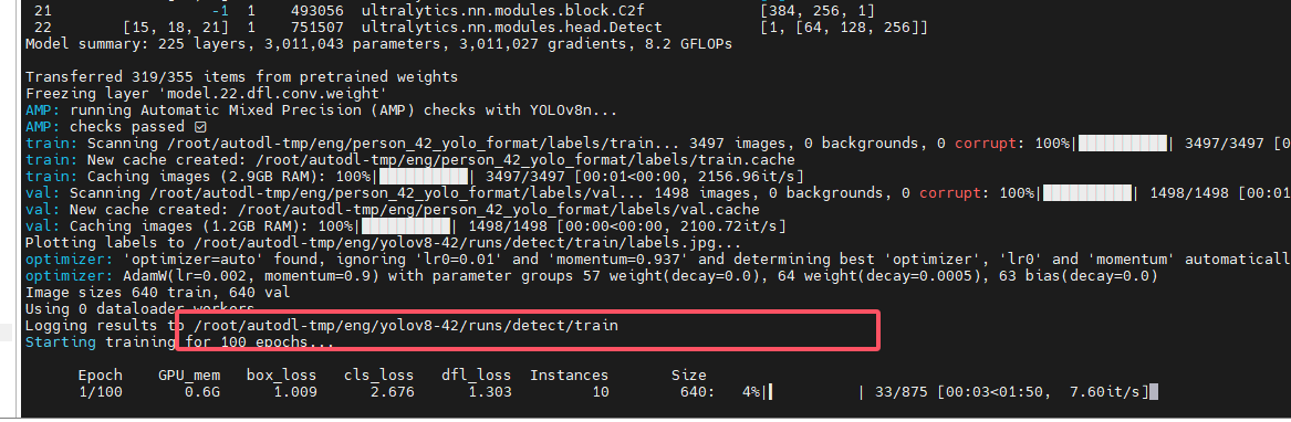训练过程中他会显示日志和模型存放的目录在哪里。