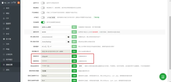 5、修改宝塔默认账号和密码